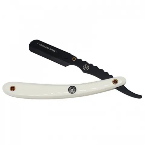 Brzytwa do golenia SRWBA wyróżnia się stosunkowo ciężkim ramieniem z ostrzem, które zostało wykonane ze stali nierdzewnej z eleganckim czarnym wykończeniem, a także wyprofilowaną rączką z wysokiej jakości tworzywa sztucznego, w białym kolorze.