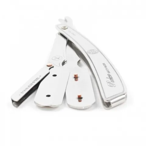 Brzytwa do golenia z ostrzem typu Shavette z unikalnym mechanizmem. Wykonana ze stali nierdzewnej. Bardzo łatwo wymienia się ostrza.