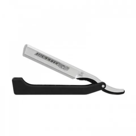 Brzytwa na wymienne ostrza Dovo Solingen Shavette 201 081. Shavette jest bliską krewną brzytwy. Jedyna istotna różnica pomiędzy klasyczną brzytwą a Shavette to rodzaj ostrza. Shavette posiada wymienne ostrza podobnie jak maszynka na żyletki. Zapewnia podobne wrażenia jak golenie brzytwą bez konieczności czasochłonnych przygotowań np. polerowania brzytwy na pasie czy ostrzenia na kamieniu.Do brzytwy pasują połówki standardowych żyletek oraz połówki ostrzy DOVO Shavette Razor (201014). .