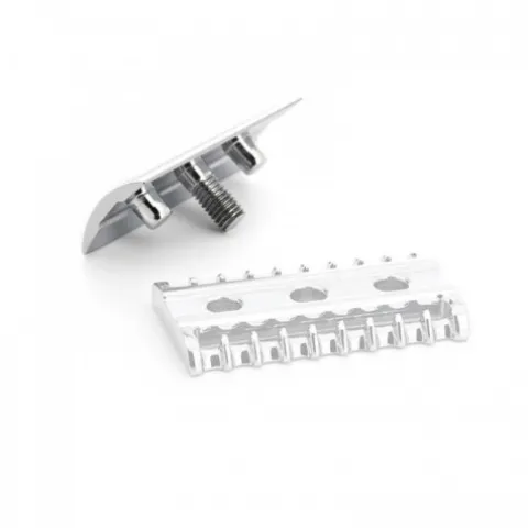 Kompania Mühle dokładnie opracowuje wszystkie szczegóły nie tylko, jeśli chodzi o akcesoria do golenia, ale również, jeśli chodzi o części składowe. Element przedni głowicy maszynki w kształcie litery T obowiązkowo się przyda każdemu brodaczowi, ponieważ otwarty grzebień w głowicy to wyraźna cecha konstrukcyjna głowicy, widoczna gołym okiem. Zakończenie dolnej części głowicy kształtem przypomina grzebień, dzięki czemu umożliwia rozczesanie i naciągnięcie włosów zarostu w momencie golenia, by uczynić je sprawniejszym.Element przedni głowicy pasuje do wszystkich maszynek Mühle.