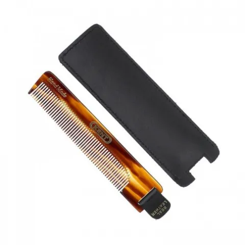 KENT NU 22 CASE – męski grzebień kieszonkowy ze skórzaną wstawką. Przeznaczony do rozczesywania krótkich włosów.