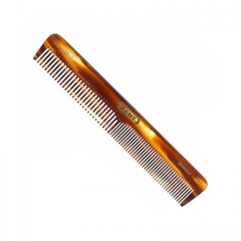 Grzebień do włosów KENT A 2T serii HANDMADE. Podzielony na dwie części: jedna z nich złożona jest z grubszych zębów o umiarkowanym rozstawie, a drugaz cienkich zębów o małym rozstawie. To, której końcówki użyjesz, zależy od rodzaju włosów i ich gęstości.Unisex – polecany zarówno dla mężczyzn jak i kobiet.