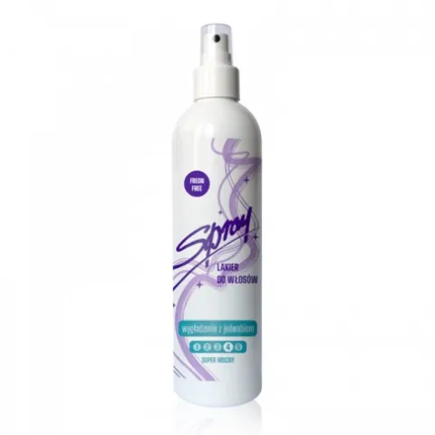 Rozpylić lakier równomiernie na włosach z odległości ok. 30 cm.