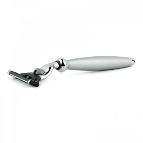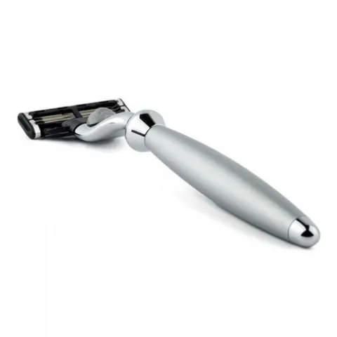 Luksusowa maszynka do bezpiecznego golenia. Ostrze Gillete Mach3. Maszynka do golenia z kolekcji Bulbous. Wykończona matowo, chromowana obudowa z mosiądzu.