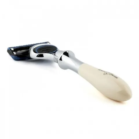 Luksusowa maszynka do golenia. System ostrzy Gillette Pro-glide 5. Maszynka do golenia z kolekcji Plaza z uchwytem z żywicy syntetycznej, która jest imitacją kości słoniowej.