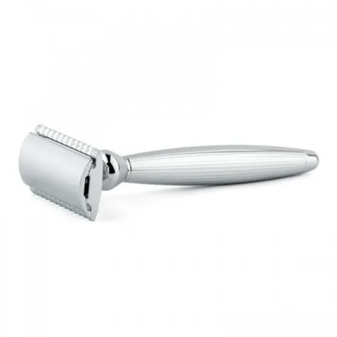 Klasyczna maszynka do golenia w kształcie litery T z zamkniętym grzbieniem z serii Bulbous Lined. Wspaniale się sprawdzi w rękach początkujących brodaczy.