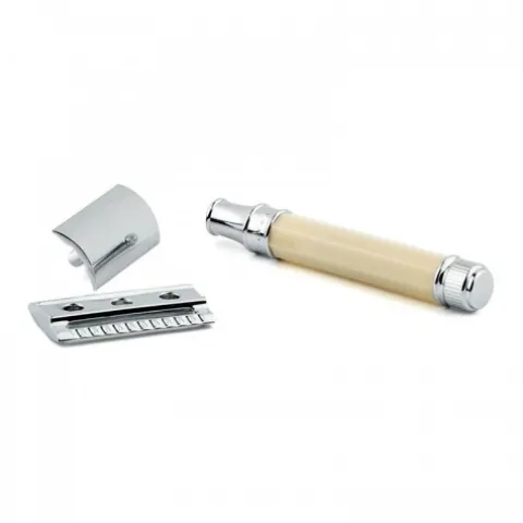 Tradycyjna maszynka do golenia dla zwolenników golenia na mokro. Zamknięty grzebień.