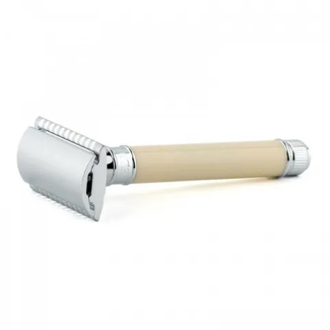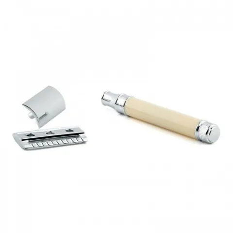 Prezentowana maszynka – wspaniały pomysł na prezent. Stylowy design, wysoka angielska jakość i komfortowe golenie – perfekcyjne połączenie. Maszynka posiada zamknięty grzebień, dzięki czemu golenie jest jednocześnie komfortowe i bezpieczne. Jeśli masz delikatny miękki zarost taka maszynka – wspaniały wybór dla Ciebie. Rączka wykonana z jakościowej żywicy syntetyczne w kolorze kości słoniowej. Rączka z mosiądzu, chromowana, ozdobiona grawerem logo Edwin Jagger. Głowica również jest wykonana z mosiądzu. Uchwyt z systemem ograniczającym ślizganie się maszynki w dłoni. Wysokogatunkowa maszynka do golenia, która będzie służyła ci latami.