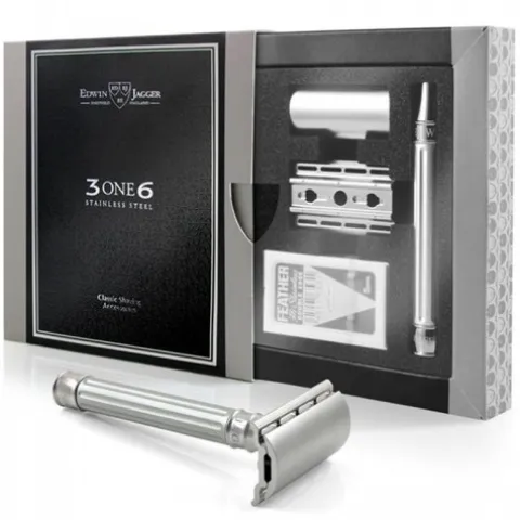 Maszynka na żyletki Edwin Jagger DESSGA9BL 3ONE6 — to bardzo komfortowe uczucia podczas golenia, idealnie gładka skóra w rezultacie i wysoka jakość od znanej brytyjskiej marki.