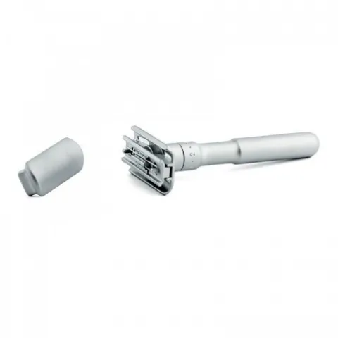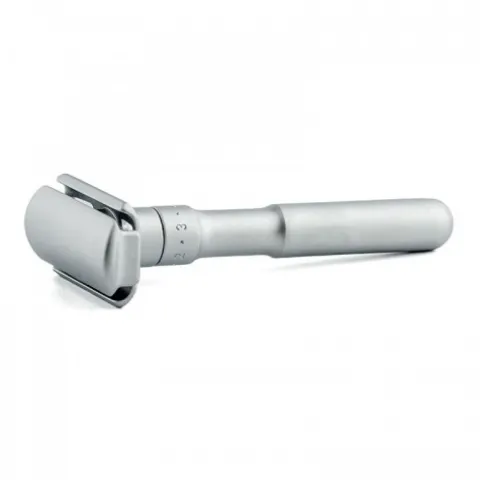 Prosta i niezawodna matowa maszynka do golenia na żyletki Merkur Futur z grzebieniem adjustable – to wspaniała maszynka zarówno dla początkujących, jak i doświadczonych użytkowników bezpiecznych klasyków. Osobliwością tej maszynki jest możliwość regulacji szczeliny między grzebieniem a ostrzem maszynki, co bezpośrednio wpływa na stopień jej agresywności.