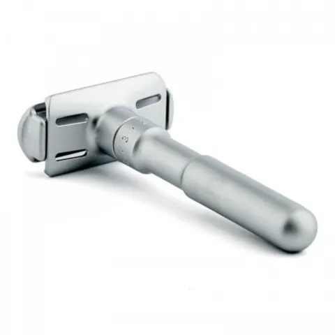 Opis: Maszynka do golenia na żyletki Merkur Futur 90700002 wykończona na matowo, chromowana
