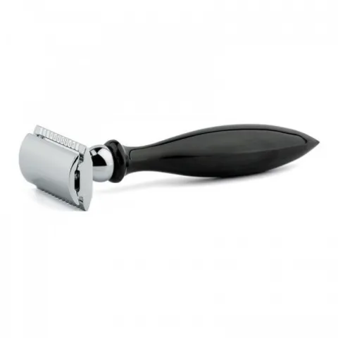 Wygodna bezpieczna maszynka do golenia z naturalnego rogu bawolego. Ze względu na charakter i sposób pozyskiwania materiału (naturalny róg), kolor i odcień uchwytu przedstawionego na zdjęciu może się różnić od egzemplarza otrzymanego przez Państwo. Anatomiczny kształt rączki ułatwi precyzyjne golenie.