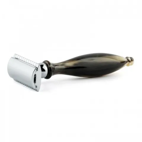 Maszynka do golenia, która łączy w sobie elegancki design i wysoką jakość. Rączka z naturalnego rogu bawolego. Głowica maszynki praktycznie taka sama jak Merkur HD albo Merkur 38C.