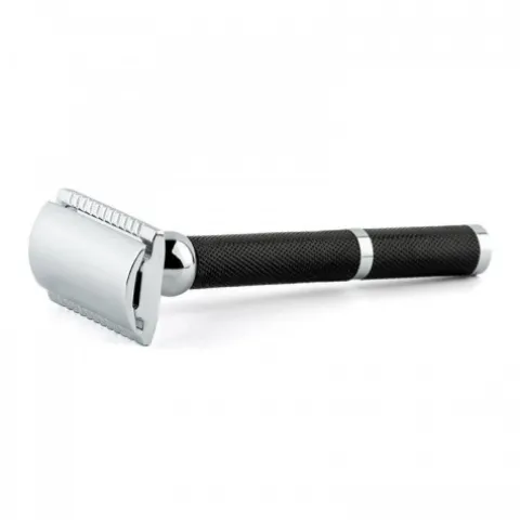 Prezentowana maszynka jest gwarancją komfortowego golenia. Zapenia gładkie golenie bez zacięć. Wykonana z wysokogatunkowego stpu mosiądzu, pokryta niklem. Rączka w czarnym kolorze, antypoślizgowa. co poprawia przyczepność podczas golenia.