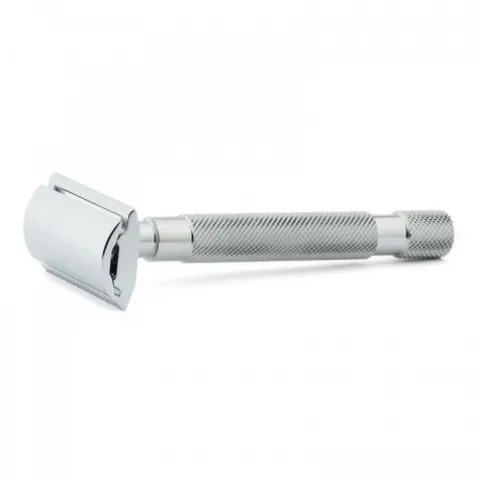 Maszynka do golenia 64S z podwójną krawędzią z wysokojakościowej stali nierdzewnej Marine Grade 316L, która jest odporna na korozję. Ergonomiczny, doskonale dopasowany kształt uchwytu z radełkowanymi żłobieniami maszynki do golenia został zaprojektowany tak, aby perfekcyjnie zbalansować kontakt między dłonią a skórą twarzy.Trzyczęściowa głowica Parker 64S zapewnia precyzyjne golenie.