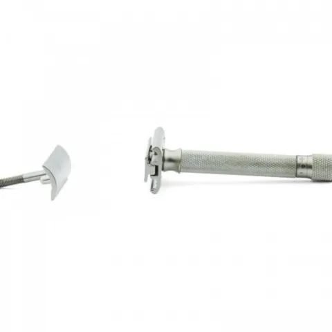 Parker VARGR Variant –maszynka 2- częściowa. 5 stopniowa regulacja ekspozycji ostrza.Pozycje 1 – 5 na rączce można ustawiać wg własnej praktyki i dopasowywać do golenia optymalnego dla swojego zarostu.