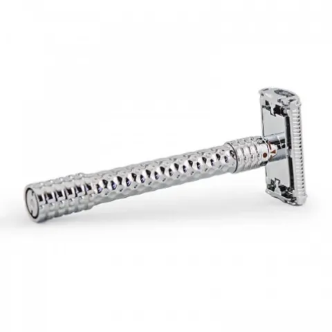 Razorock Adjust Safety Razor to golarka z regulowanym ostrzem, wyposażona w mechanizm otwierania skrzydeł motylkowych.