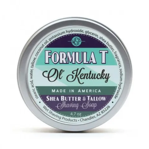 Naturalne mydło do golenia Formula T od WSP zawiera tłuszcz zwierzęcy. Mydło Shaving Soap Ol ‘Kentucky o wspaniałym zapachu, wzbogacone o naturalne składniki gwarantuje komfortowe i gładkie golenie.