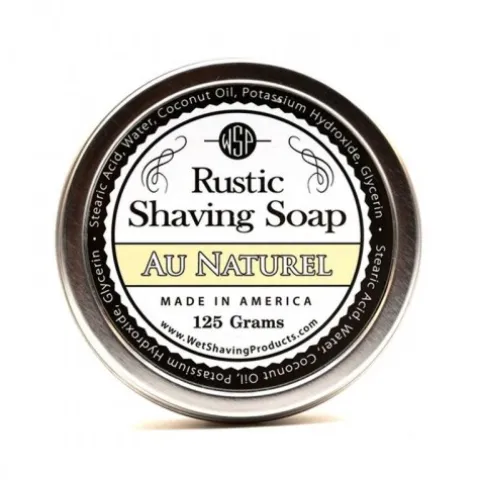 100% naturalne mydło WSP Rustic Shaving Soap Au Naturel do maksymalnie gładkiego golenia. robione ręcznie. Polecane do skóry wrażliwej.