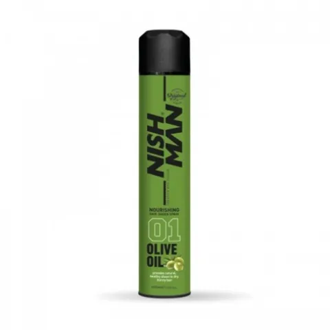 Nishman Olive Oil Sheen Spray — to praktyczny, wzbogacony cenną oliwą z oliwek spray do odżywienia i nabłyszczenia włosów .
