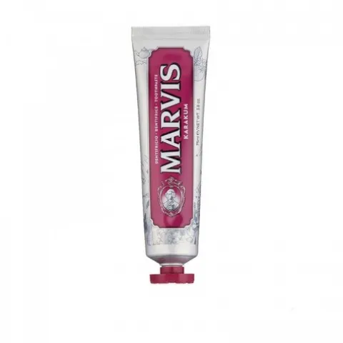 Pasta do zębów Marvis Karakum Limited Edition – to zaskakujące połączenie smaku mięty, kardamonu i soku z pomarańczy.Inspiracją do stworzenie Marvis Karakum była egzotyczna podróż przez Morze Czarne, Persję aż na wschód Chin. Nieoczywisty, jednocześnie słodki, orientalny i świeży smak zapewnia długotrwałe uczucie czystości i świeżości w jamie ustnej. Pasta do zębów Marvis Karakum nie zawiera fluoru..