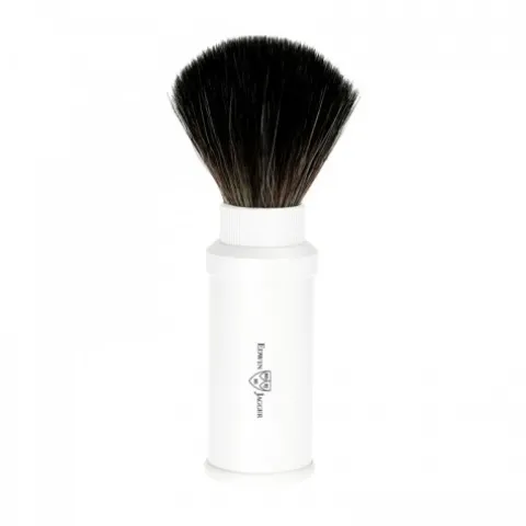 Wygodny kompaktowy składany pędzel podróżny od Edwina Jaggera. Pędzel zamknięty pozostaje w metalowej tubie, dzięki czemu pozwala się wygodnie przewozić nie rozstając się z klasyczną elegancją. Wystarczy odkręcić tubę i z jej wnętrza wyciągnąć knot z włosia syntetycznego i nakręcić go na tubę. Tuba wykonana z białej stali. Ten szybki manewr wyposaży nas w pełnowymiarowy pędzel najwyższej jakości. Teraz nie musisz rezygnować z ulubionego tradycyjnego golenia na mokro nawet w podróży. Na uchwycie z przodu nadrukowane delikatne logo producenta „Edwin Jagger”. Pędzel do golenia składany Edwin Jagger 21M538 – wspaniały pomysł na prezent.