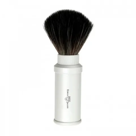 Wygodny kompaktowy składany pędzel podróżny od Edwina Jaggera. Pędzel zamknięty pozostaje w metalowej tubie, dzięki czemu pozwala się wygodnie przewozić nie rozstając się z klasyczną elegancją. Wystarczy odkręcić tubę i z jej wnętrza wyciągnąć knot z włosia syntetycznego i nakręcić go na tubę. Tuba wykonana z aluminium pokryta powłoką srebra. Ten szybki manewr wyposaży nas w pełnowymiarowy pędzel najwyższej jakości. Teraz nie musisz rezygnować z ulubionego tradycyjnego golenia na mokro nawet w podróży. Na uchwycie z przodu nadrukowane delikatne logo producenta „Edwin Jagger”. Pędzel do golenia składany Edwin Jagger 21M530 – wspaniały pomysł na prezent.