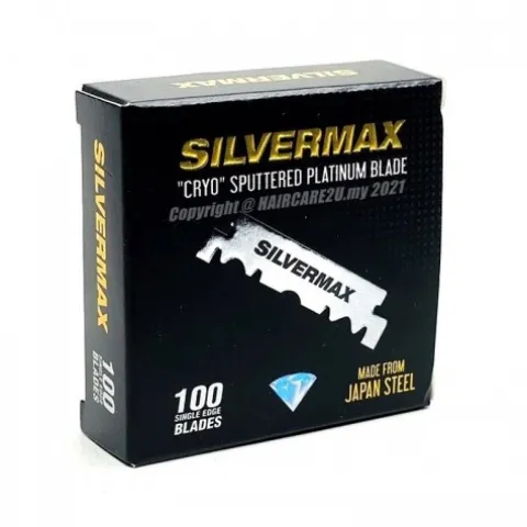 Ostrza Silvermax wykonane są z wysokiej jakości japońskiej stali, pokrytej unikalną technologią 5 różnych warstw metali i polimerów, ostrza te z łatwością radzą sobie z twardym i grubym włosiem. Przeznaczony do użytku w grotach, specjalnych niebezpiecznych maszynkach do golenia z wymiennymi ostrzami, w których używana jest połowa standardowych ostrzy. Te ostrza są wysokiej jakości do użytku profesjonalnego – 1/2 ostrza zapewnia doskonałe golenie. Każde z tych ostrzy jest owinięte woskowanym papierem dla dodatkowej ochrony i sterylnego przechowywania.