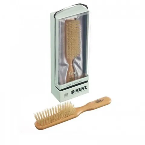 Wąska nieco płaska szczotka do włosów z białym naturalnym włosiem. Wykonana z drewna satynowego i drewna bukowego. Szczotka do włosów KENT LS1 szczególnie się sprawdza w przypadku długich włosów.