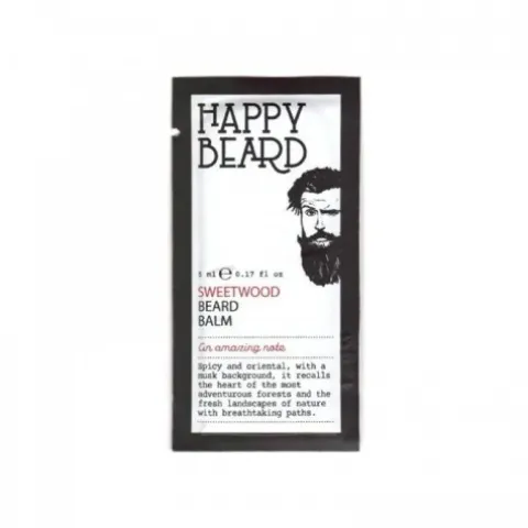 Happy Beard Sweetwood — to wspaniały tester balsamu (5 ml) włoskiej marki, który zapewnia kompleksową pielęgnację brody i ma przyjemny efekt odświeżający.