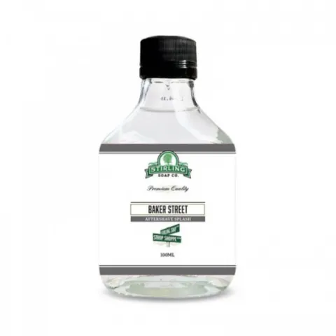 Dzięki hojności właścicieli sklepu Strop Shoppe firma Stirling Soap Co. ożywił kultowy zapach. Stirling Aftershave Splash Baker Street – świeża i męska mieszanka jałowca, bergamotki, jaśminu i paczuli. Ten tradycyjny spray po goleniu, składający się zaledwie z kilku składników, stanowi idealne zakończenie codziennego golenia.