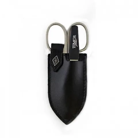 Pilniczek do paznokci i nożyczki w czarnym skórzanym etui.