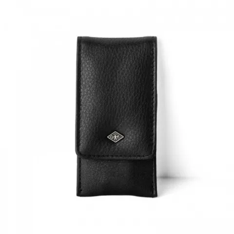 Zestaw do manicure w czarnym skórzanym etui. Składa się z nożyczek do manicure, pincety i pilniczka do paznokci.
