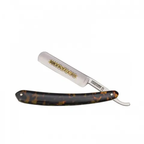 Brzytwa ze stali węglowej do precyzyjnego golenia. Wykonana ręcznie. Rączka z akrylu z imitacją skorupy żółwia.