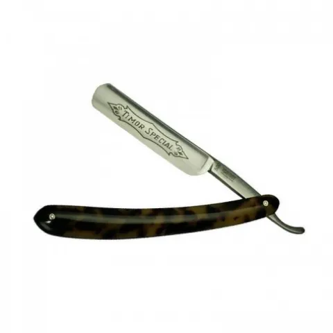Ostrze wykonano ze stali węglowej, bardzo cienkie. Optymalna szerokość ostrza, które ułatwia precyzyjne golenie. Wygodna rączka z akrylu, imitacjaskorupy żółwia. Ostrze jest ozdobione wygrawerowanym napisem. Jest to klasa sama w sobie.