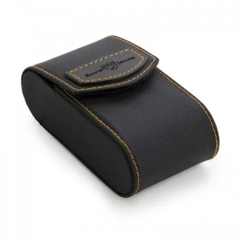 Etui na tradycyjne maszynki do golenia Edwin Jagger z czarnej tkaniny, obszywane pomarańczową nicią. Etui na magnes.W środku znajdują się dwie kieszonki na żyletki. Wygodne eleganckie etui przyda się do ochrony maszynki przed uszkodzeniami w czasie podróży.