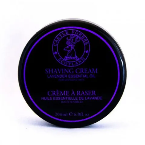Krem do golenia Castle Forbes Lawenda – ten krem do golenia ma wyrafinowany zapach, stworzony z najczystszych olejków eterycznych. Nie zawiera parabenów, barwników, produktów pochodzenia zwierzęcego i nie był testowany na zwierzętach. Wystarczy niewielka ilość kremu w połączeniu z dużą ilością wody, aby uzyskać bogatą, kremową, ale niezwykle delikatną pianę zapewniającą doskonałe golenie. Jest szczególnie odpowiedni dla skóry wrażliwej lub łatwo ulegającej podrażnieniom, dzięki kojącym właściwościom olejków eterycznych z lawendy.
