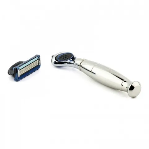 Maszynka do golenia z wymiennymi wkładami od Edwin Jagger z systemem ostrzy Fusion. Bardzo komfortowe golenie! Rączka z mosiądzu.