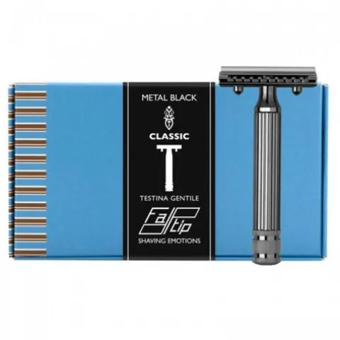 Fatip Grande Black Metal PC 42123 — to stylowa i praktyczna maszynka na żyletki z zamkniętym grzebieniem, która idealnie nadaje się do wydajnego i bezpiecznego golenia.