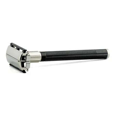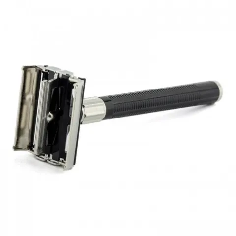 Maszynka do komfortowego golenia w kształcie litery T. Składa się w metalowej głowicy „motylkowej” i wygodnej rączki o długości 10 cm. Nie zważając na małą wagę maszynki, zapewnia ona jakościowe golenie..