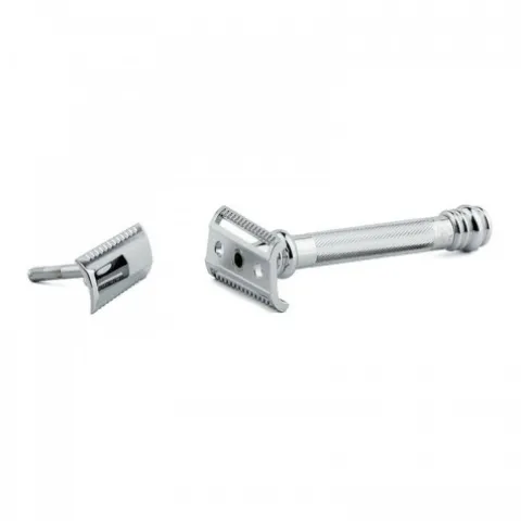 Gruba i dość długa rączka sprawia, że maszynką jest ergonomiczna i zwrotna. Z pomocą tej maszynki można dotrzeć do wszystkich trudno dostępnych miejsc. Wszystkie części Merkur 39C Slant są wykonane z trwałego i odpornego na korozję stopu metalu.