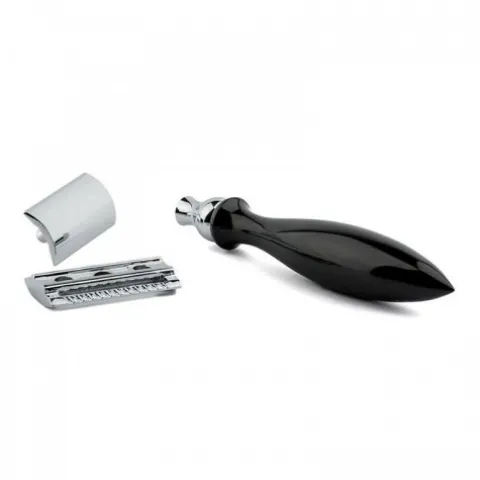 Wygodna bezpieczna maszynka do golenia z naturalnego rogu bawolego. Ze względu na charakter i sposób pozyskiwania materiału (naturalny róg), kolor i odcień uchwytu przedstawionego na zdjęciu może się różnić od egzemplarza otrzymanego przez Państwo. Anatomiczny kształt rączki ułatwi precyzyjne golenie.
