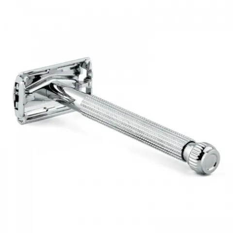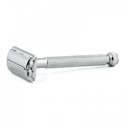 Prezentowana maszynka do golenia ma bardzo wygodną wydłużoną rączkę z antypoślizgowymi radełkowanymi żłobieniami. Łatwy system wymiany żyletki. Pozwala dotrzeć do praktycznie każdego włoska. Maszynka do golenia chromowana, rączka w kolorze lawendowym.