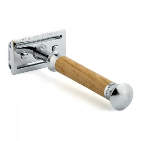 Niemiecka maszynka do golenia z zamkniętym grzebieniem z rączką wykonaną z orzecha. Zapewnia komfortowe, perfekcyjne golenie.