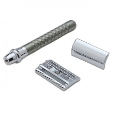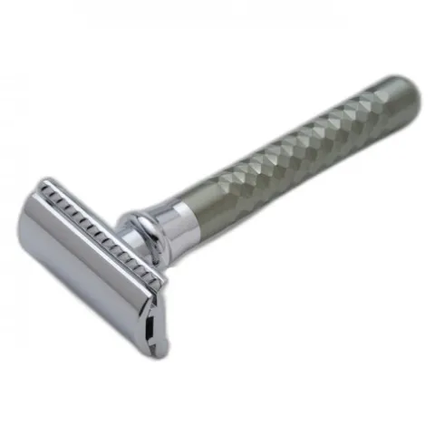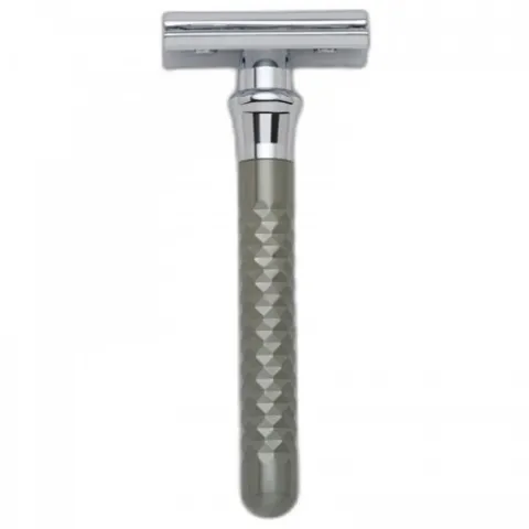 Stylowa rękojeść ma teksturowaną i radełkowaną powierzchnię, co nie tylko nadaje maszynce luksusu, ale również zapewnia komfort użytkowania, ponieważ nie wyślizguje się i pewnie leży w dłoni.