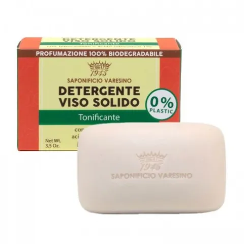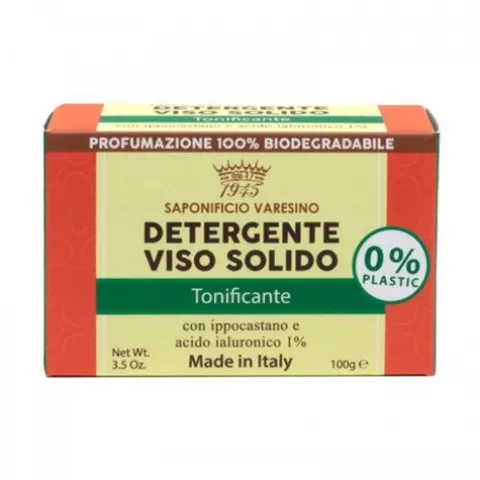 Saponificio Varesino Tonificante tonizujące mydło do twarzy. Oczyszczające mydło do mycia twarzy o neutralnym PH nie tylko delikatnie oczyszcza, ale zawiera aktywne składniki takie jak kwas hialuronowy i kasztanowiec, które tonizują i chronią skórę twarzy przed nadmiernym przesuszeniem. Mydło bardzo dobrze sprawdza się przed goleniem jako pre shave odpowiednio zmiękczając skórę i przygotowując zarost do golenia.