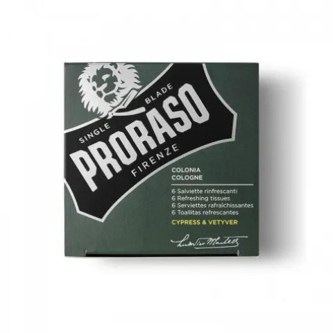 Opis: Odświeżające chusteczki Proraso Cypress & Vetyver 6 szt.