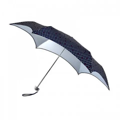 Parasolka damska FULTON PARASOLEIL RANDOM SPOT Wyjątkowe poszycie parasole, będące połączeniem wysokiej jakości, gęstego nylonu oraz specjalnej srebrnej warstwy zabezpieczającej przed promieniami UV, zapewnia wyjątkowy efekt – wodoodporność i jednocześnie znakomite zabezpieczenie przed słońcem.