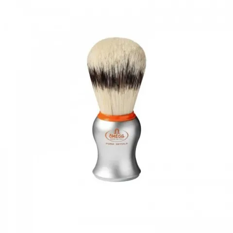 Pędzel do golenia Omega 11573 dzik – będzie niezastąpionym pomocnikiem podczas golenia. Pędzel z włosia dzika pozwala wytworzyć gęstą, sztywną pianę, a również delikatnie masuje Twoją twarz. Uchwyt w kształcie litery S bardzo dobrze się układa w dłoni, zapobiega wysuwaniu pędzla z mokrej dłoni. Ma ładny srebrny kolor, bardzo trwały. Pędzel z włosia dzika. Jest bardzo elegancki, więc będzie prawdziwą ozdobą Twojej łazienki. Zamawiaj już teraz w naszym sklepi internetowym!.