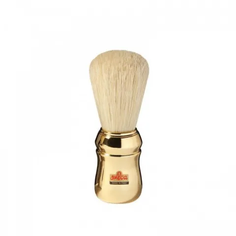 >Pędzel do golenia z włosia dzika. Stylowy design. Uchwyt wykonany z plastiku, w złotym kolorze.